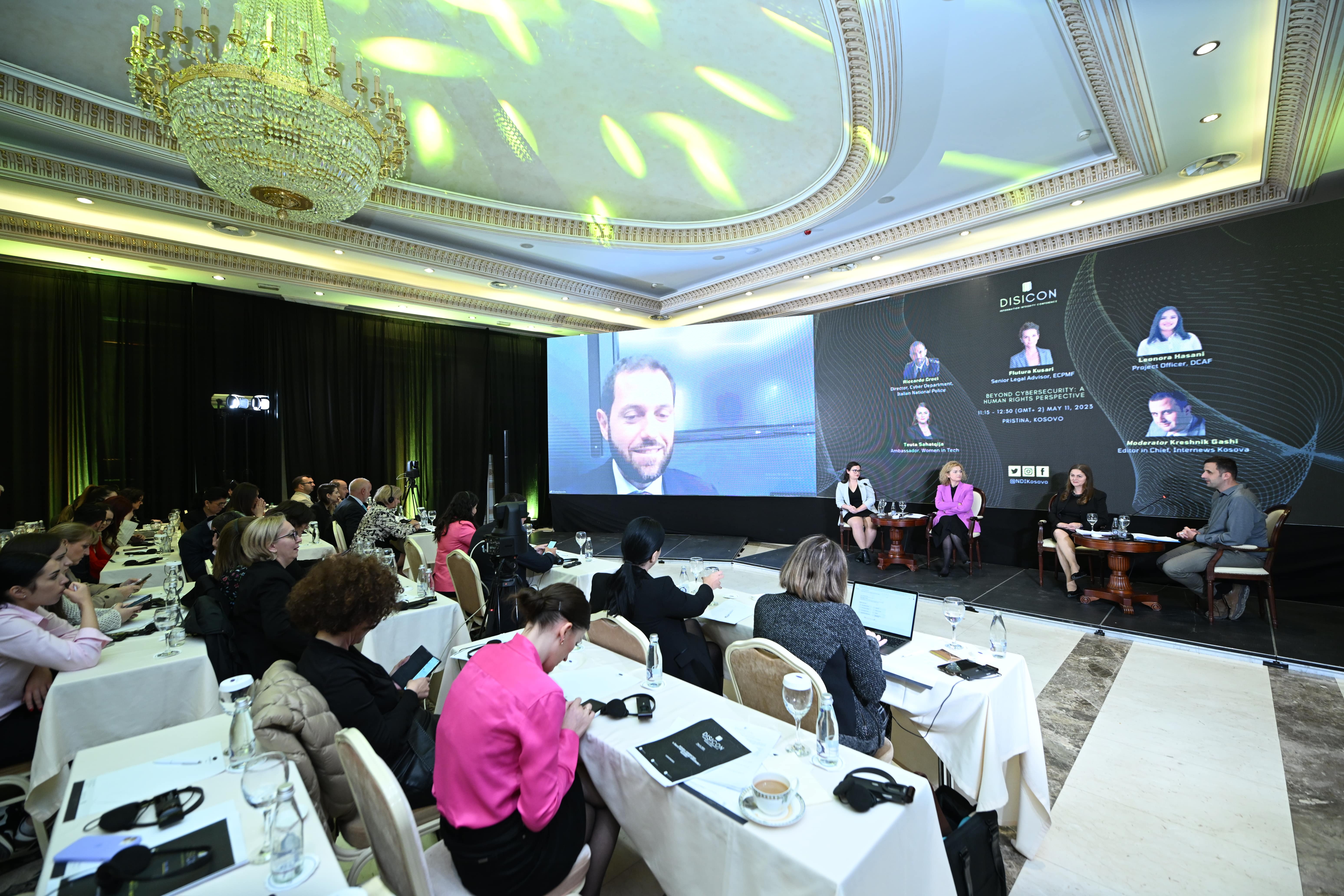 A panel discussion focused on the intersection of cybersecurity and human rights, acknowledging the impact of technology and the internet on human rights, privacy, freedom of expression, and access to information. The panellists, including representatives from the Italian National Police, Women in Tech Kosovo, ECPMF Kosovo, and the Geneva Centre for Security Sector Governance, analyzed Kosovo's vulnerability to cyber threats, examined the current legal framework, and explored potential policy solutions for governments and private companies.