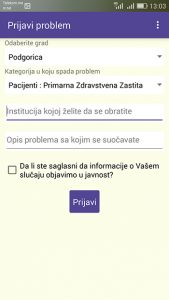 Aplikacija „Građanski institut“ je kreirana kako bi građani/ke Crne Gore mogli/e da prijave kršenje njihovih prava kao radnika, pacijenata i potrošača. Putem aplikacije za mobilne telefone građani/ke mogu da lociraju i opišu problem ali i navedu instituciju za koju smatraju da je nadležna u rješavanju problema sa kojima se suočavaju. U mogućnosti su da prijavom problema prate faze njegovog rješavanja.